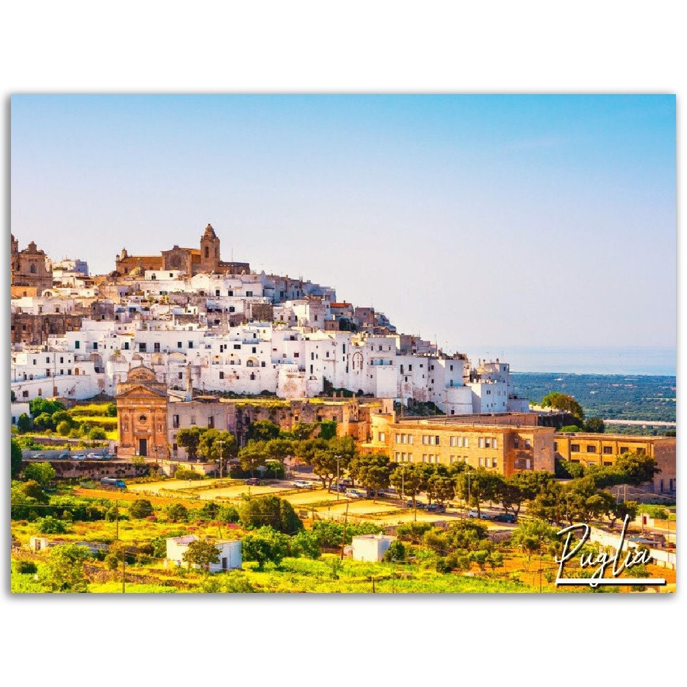 Overall, this Puglia Italy poster print is a beautiful and meaningful addition to any home or travel collection. It's sure to transport you to the charming countryside, stunning coastline, or historic towns of Puglia every time you look at it, and makes for a stunning wall hanging and collectible.