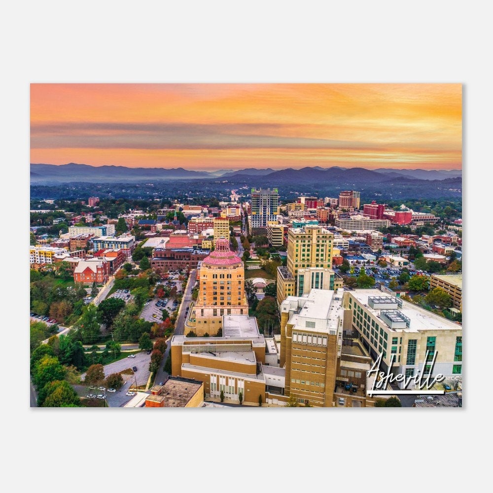 Elevate your home decor with this carefully curated image, showcasing Asheville's iconic skyline and picturesque landscapes. The composition of the photo exudes a sense of urban allure, making it a perfect addition to your home or a thoughtful gift for anyone with a love for this enchanting city.
