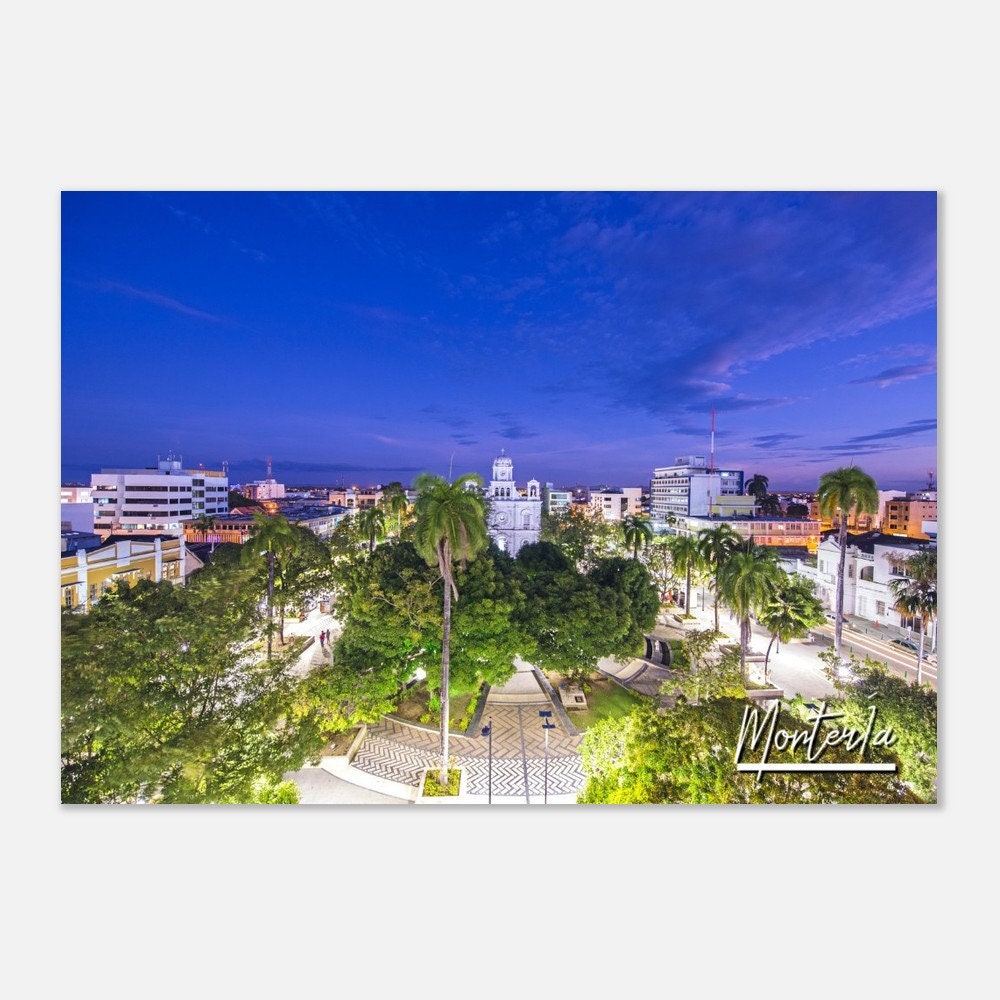 Adding a final touch of elegance, the words 'Montería, Colombia' are inscribed at the bottom of the poster in a chic, modern font. This poster is more than just a decorative piece; it's a tribute to Montería's charm and a splendid addition to any space, perfect for anyone who cherishes the city's beauty